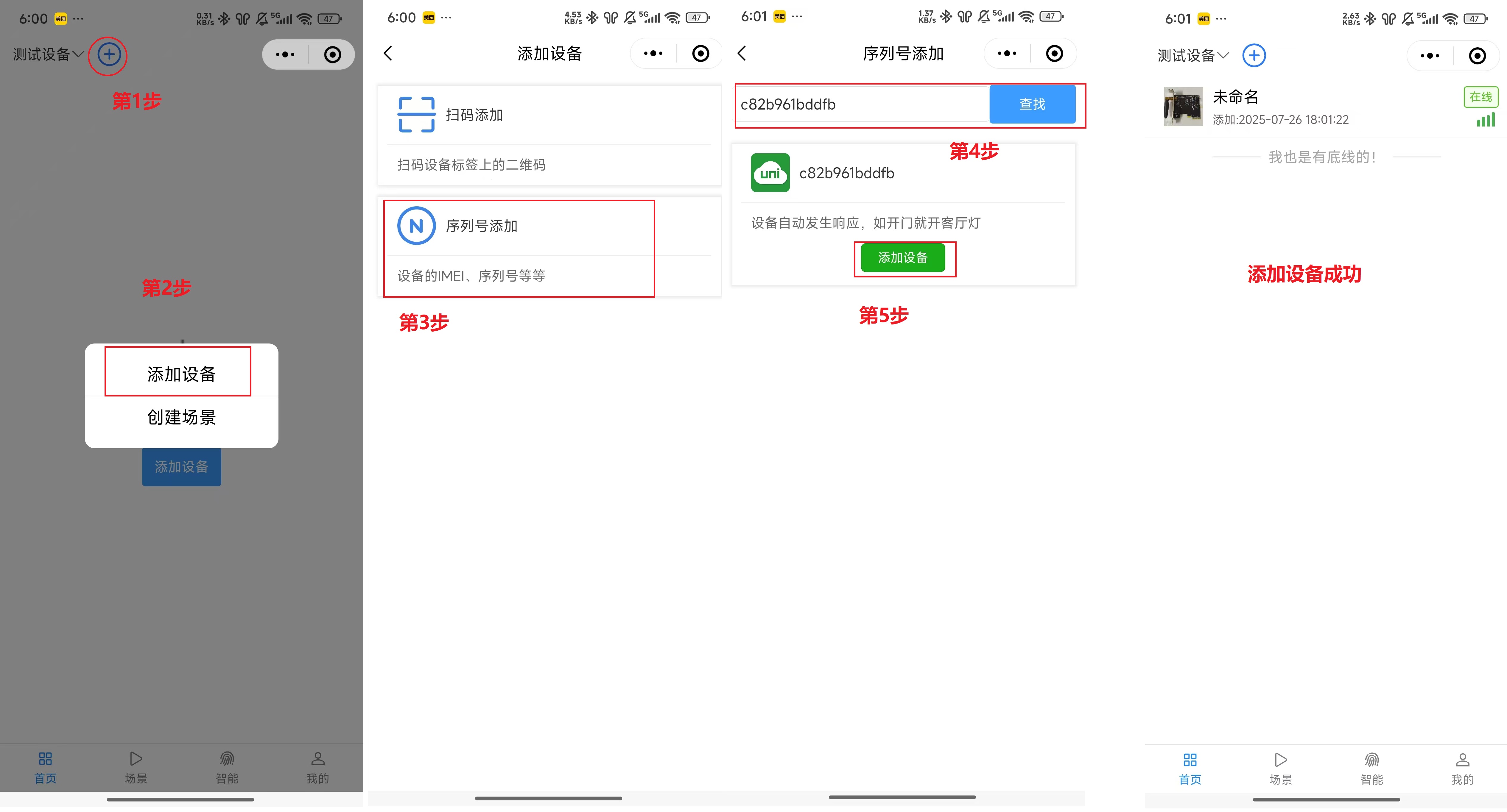 打开微信->搜索“小李子科技”小程序(也可以微信扫一扫打开),进行下图操作即可完成设备的添加,如果没有账号,请先注册账号在进行设备添加